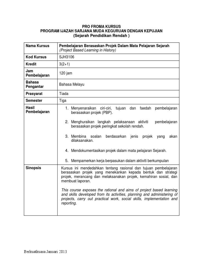 Sjh3106 Pembelajaran Berasaskan Projek Mata Pelajaran Sejarah Pdf