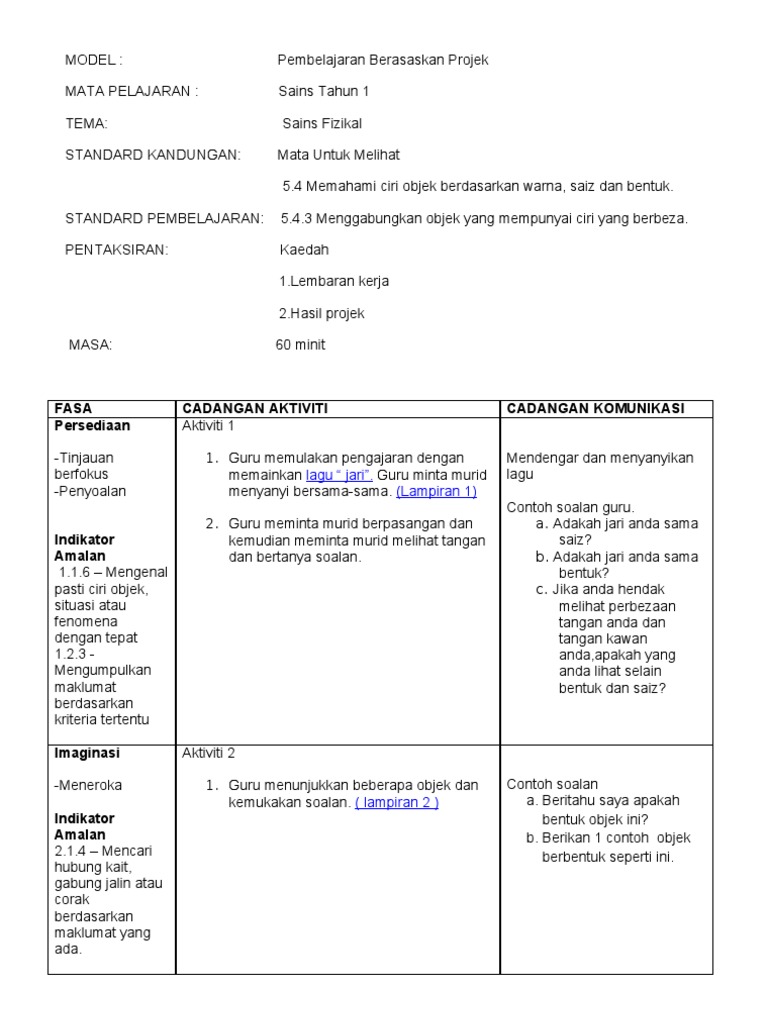 Contoh Aktiviti Pembelajaran Berasaskan Projek