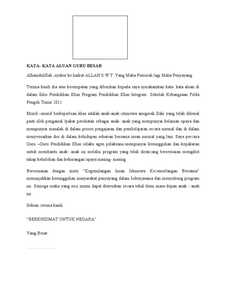 Kata alu-aluan pengetua untuk majalah sekolah. Tam weng wah ketua pengarah biro pengaduan awam jabatan perdana menteri program mesra rakyat dewan majlis daerah jempol bahau negeri sembilan 13 september 2012 khamis 830 pagi-1230 tengahari. Saya mengucapkan ribuan terima kasih pada semua ibubapa yang dapat hadir pada Mesyuarat Agong PIBG kali ke 38 ini.